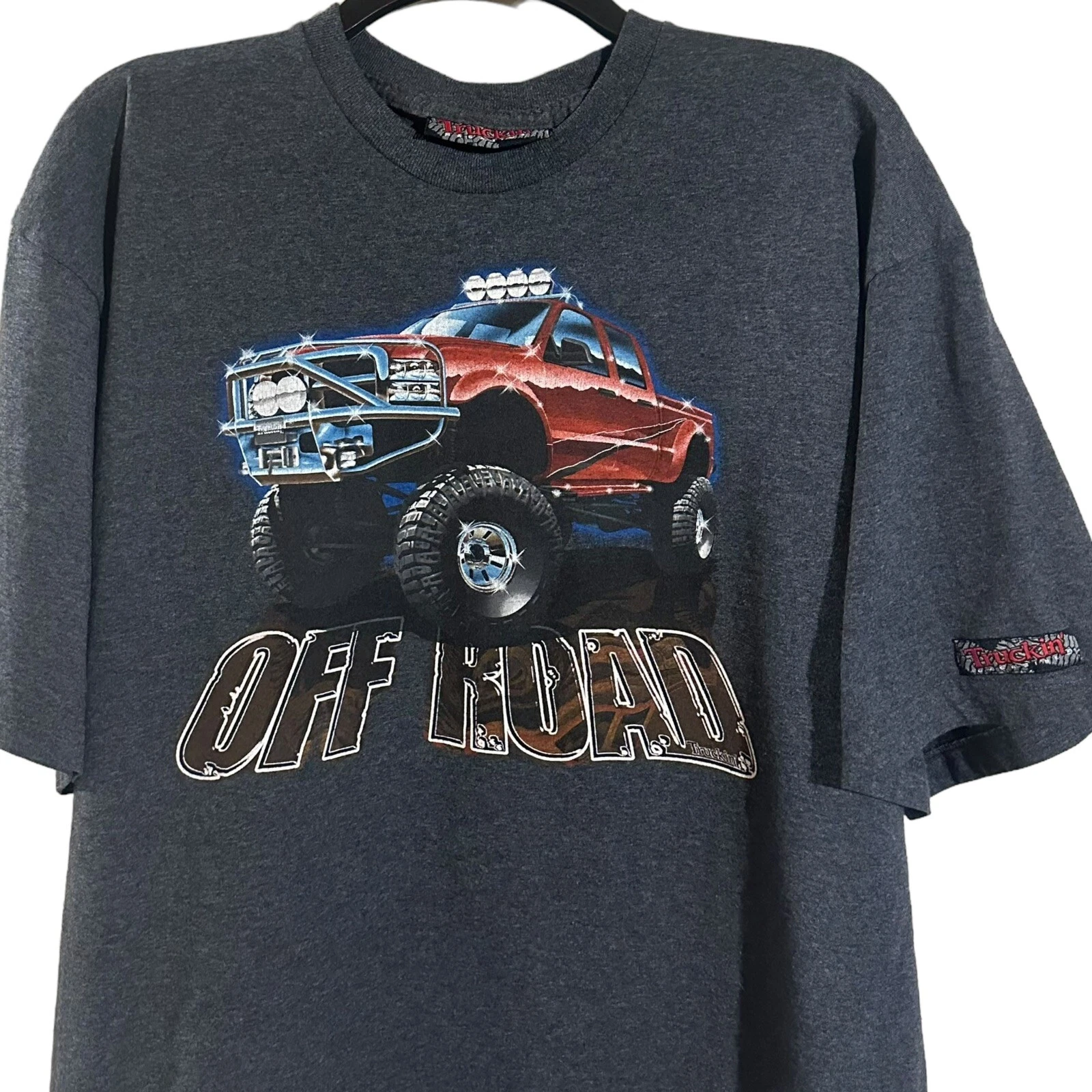 This vintage Truckin’ Magazine t-shirt is a rare find for any collector or fan of classic truck styling. The shirt features a gray Dodge lifted truck